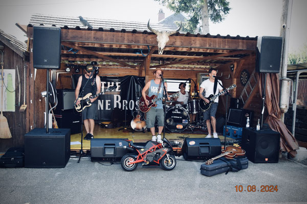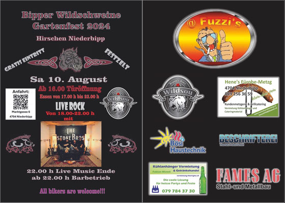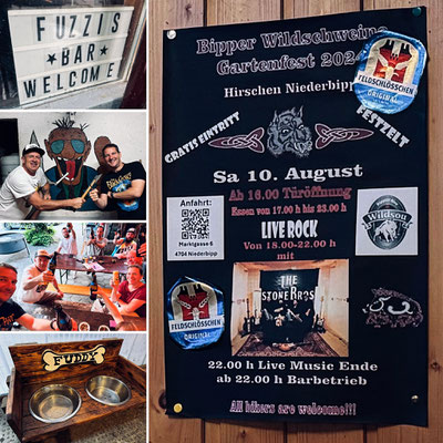 Was war das für eine Freude als uns die Bipper Wildschweine anfragten ob wir Ihr Gartenfest berocken möchten. Nicht lange rumgefackelt, eine feucht fröhliche "OK-Sitzung" abgehalten, Handschlag, letz fetz. Dass uns dann am Fest ausgerechnet einer der schönsten Sommertage und ein richtig cooles Festgelände willkommen hissen, war dann das Tüpfelchen auf dem "i". Mit der festen Überzeugung dass das grossartig werden würde, machten wir uns an den Aufbau und den Soundcheck, wurden vom gigantischen Grill verköstigt und legten dann bestens gelaunt los. Dass die Bipper Party machen können hat uns unser Drummer Tom für sein "Heimspiel" vorausgesagt und er hat Wort gehalten. Wildschweine, liebe Gäste und Freunde, danke für diesen Tag, es war uns eine grosse Ehre!